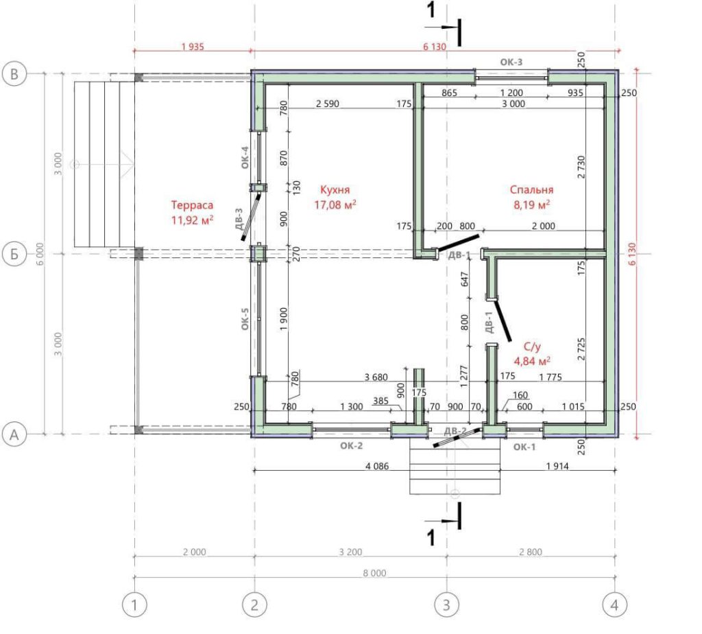 Общая площадь застройки дома — 48 м2. Отличный вариант для старта загородной жизни.
