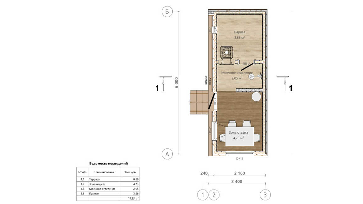 Легкость конструкции позволяет реализовать уникальные планировки: бани с террасой, мансардой, комнатой отдыха, душевой, санузлом и т.д.