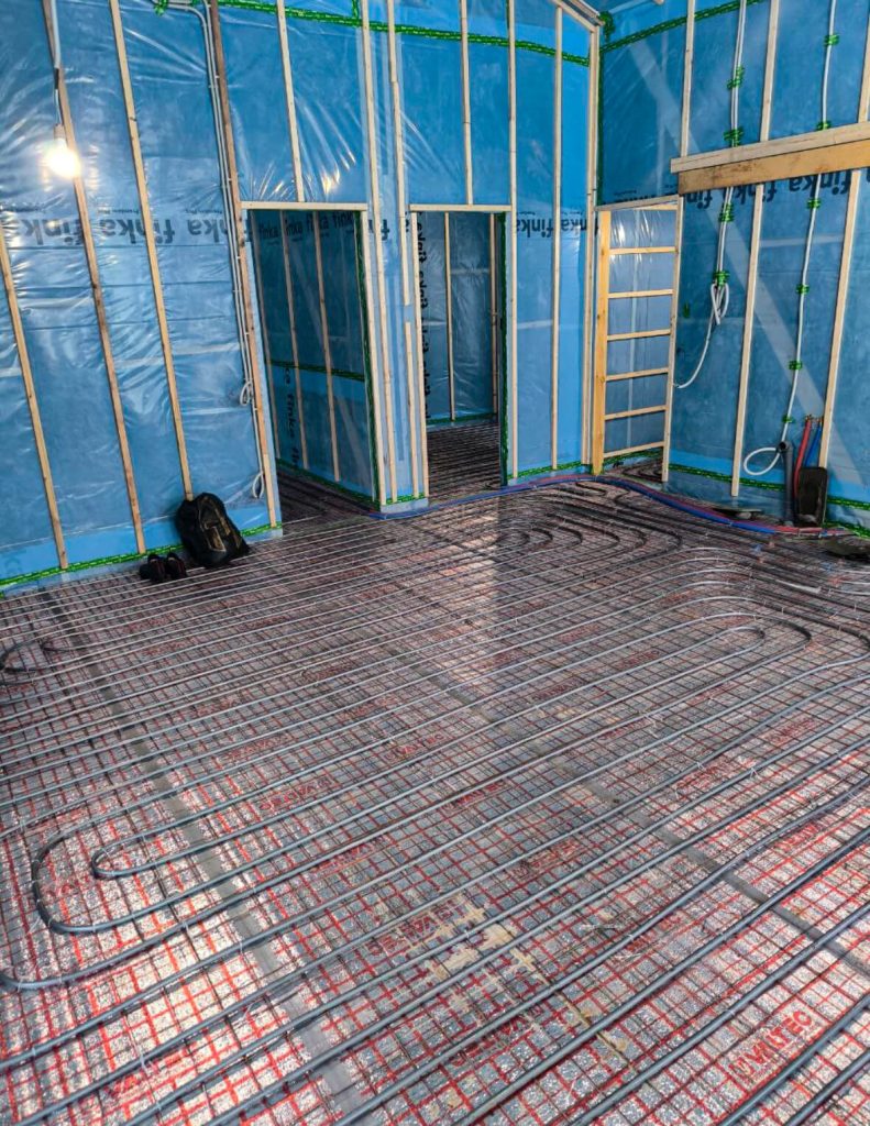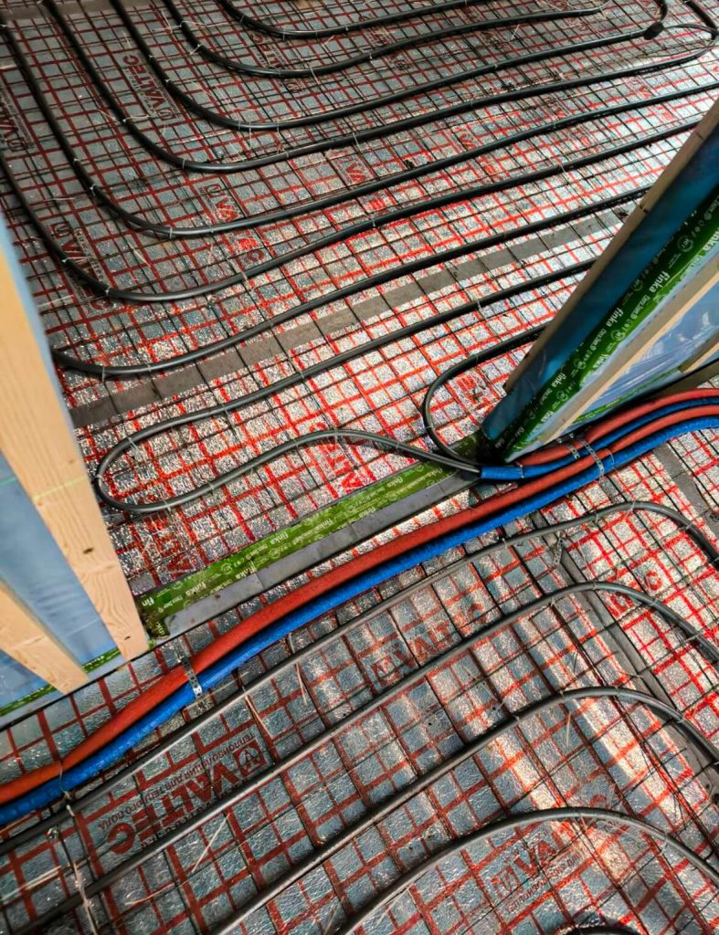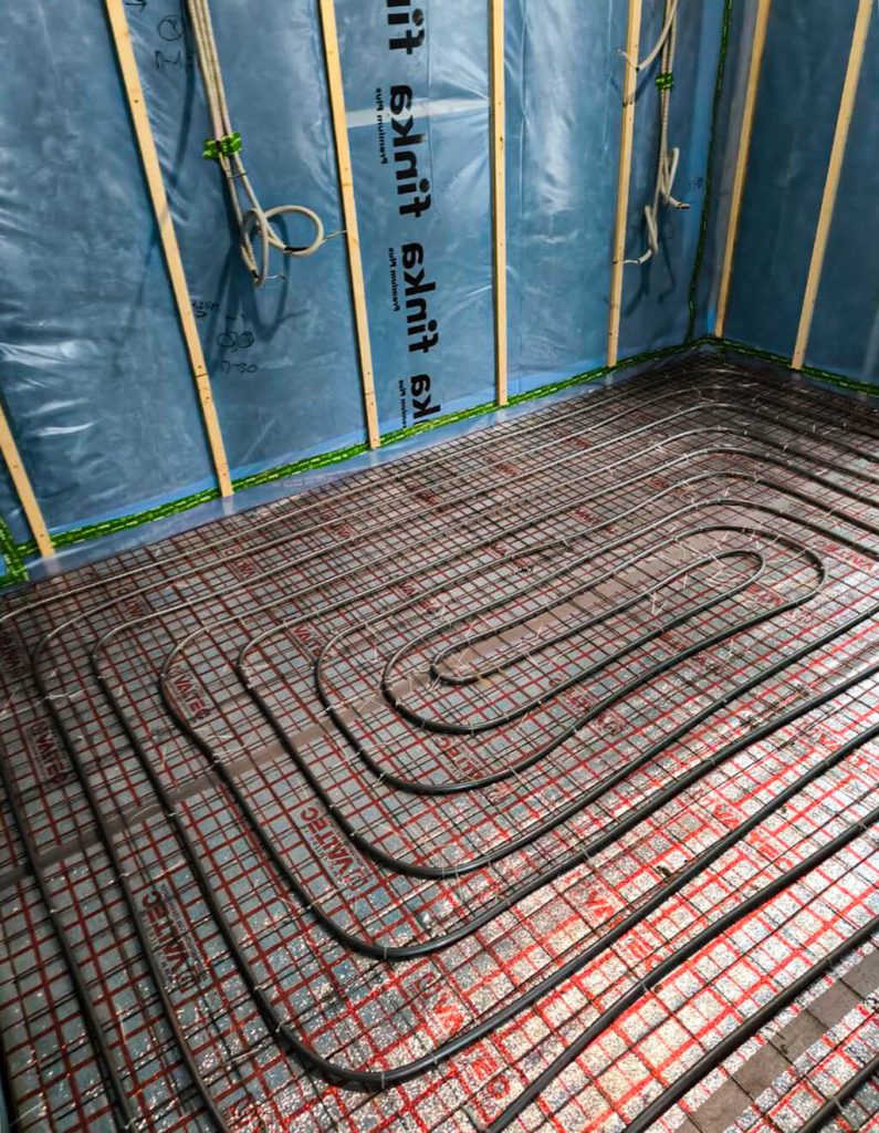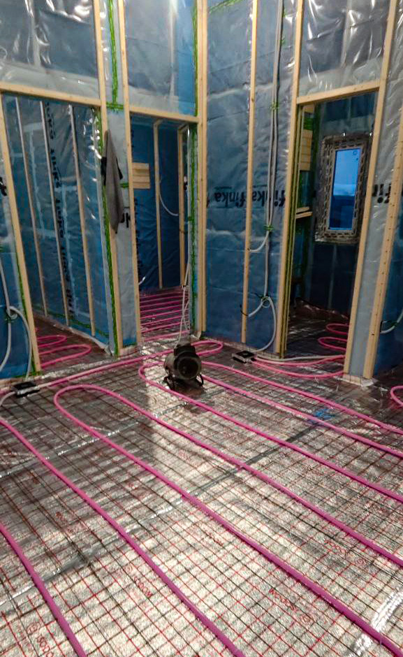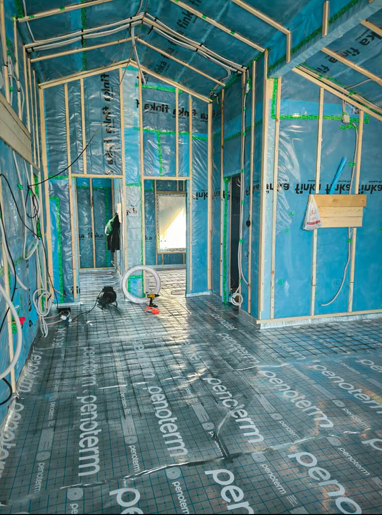 Все необходимые трубы, кабели и приборы закладываются в процессе строительства. Монтаж отопления в каркасном доме выполняется нашими специалистами с учетом особенностей объекта. Прокладка труб отопления в каркасном доме и вся проводка коммуникаций скрыты внутри стен и перекрытий, благодаря чему инженерные сети не портят интерьер и защищены от замерзания.