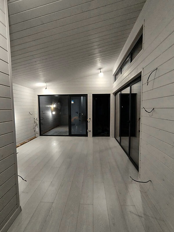 Благодаря минимальной усадке каркаса, чистовая отделка каркасного дома может выполняться сразу после возведения коробки, ускоряя процесс сдачи объекта. Такой подход экономит ваше время и силы: вы сразу получаете готовый каркасный дом с отделкой под ключ и всеми необходимыми коммуникациями.