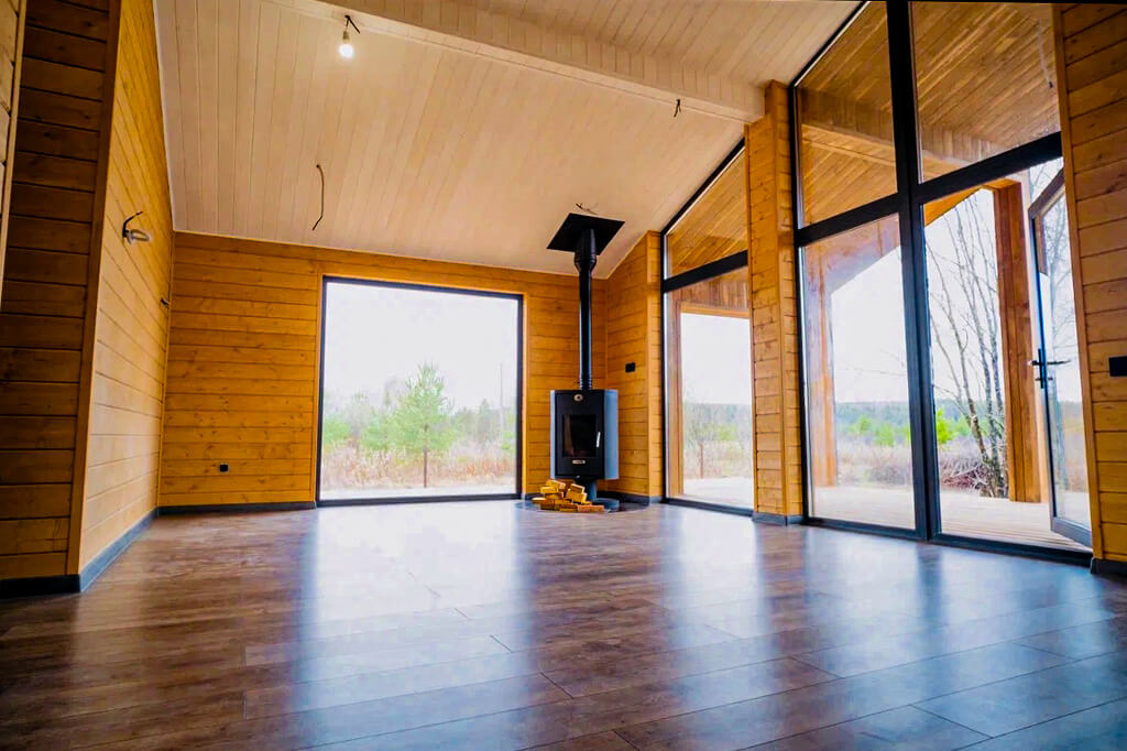 Мы готовы выполнить предчистовую отделку каркасного дома – подготовить поверхности для дальнейшего самостоятельного декорирования. Либо сразу реализуем задуманный дизайн в рамках проекта чистовой отделки каркасного дома под ключ.